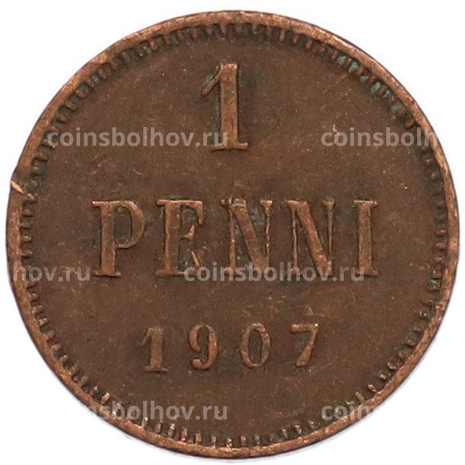 Монета 1 пенни 1907 года Русская Финляндия