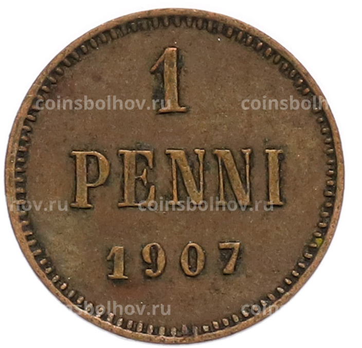 Монета 1 пенни 1907 года Русская Финляндия