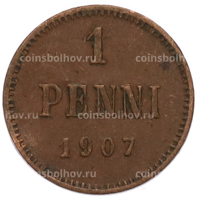 Монета 1 пенни 1907 года Русская Финляндия