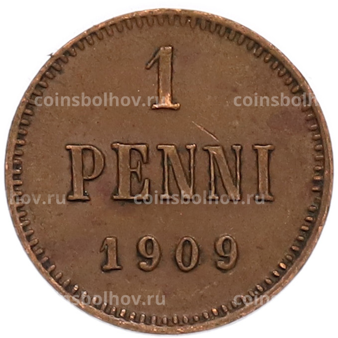 Монета 1 пенни 1909 года Русская Финляндия