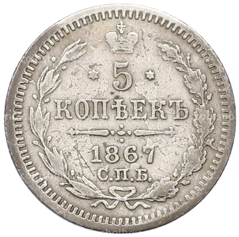 Монета 5 копеек 1867 года СПБ НI