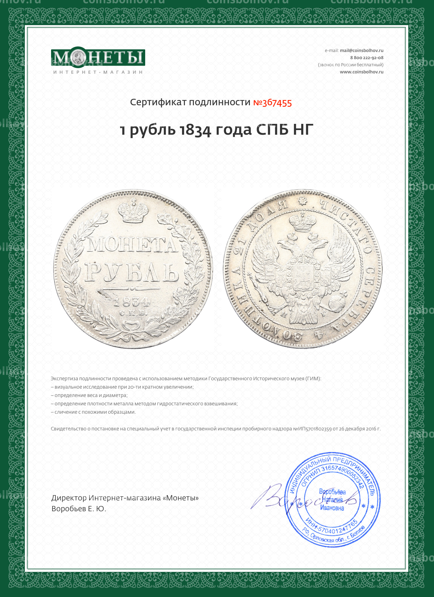Монета 1 рубль 1834 года СПБ НГ