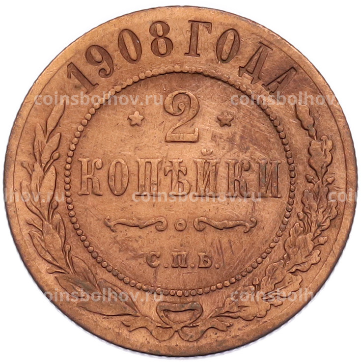 Монета 2 копейки 1908 года СПБ