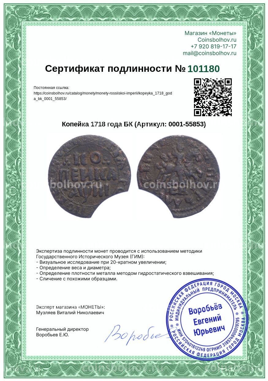Монета Копейка 1714 года МД (аверс) Монета Копейка 1714 года МД (реверс)