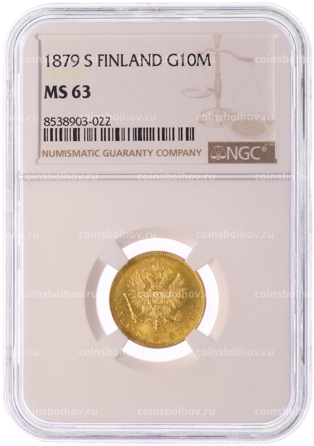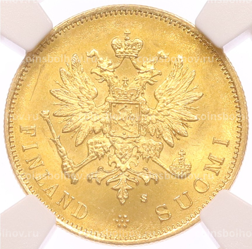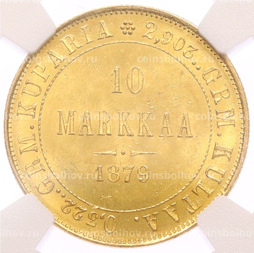 Монета 10 марок 1879 года Русская Финляндия — в слабе NGC (MS63)