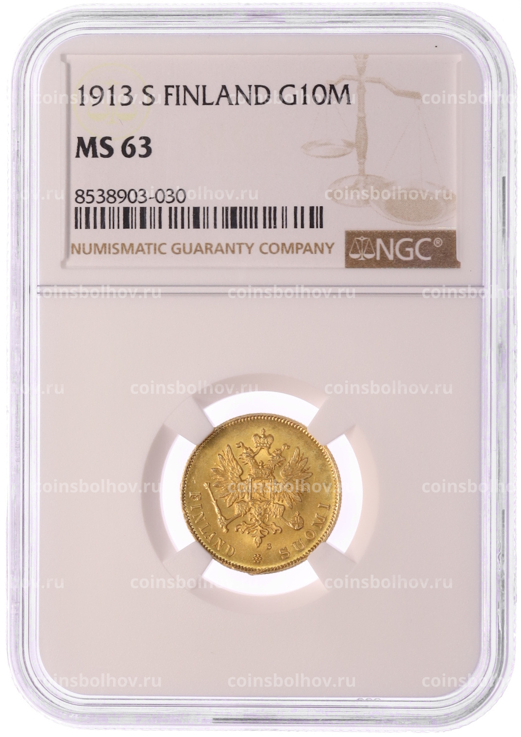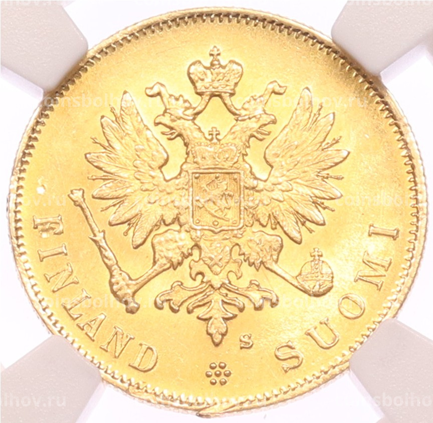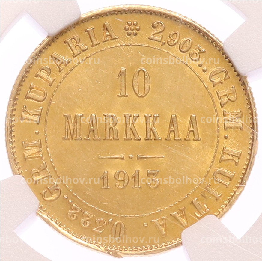 Монета 10 марок 1913 года Русская Финляндия — в слабе NGC (MS63)