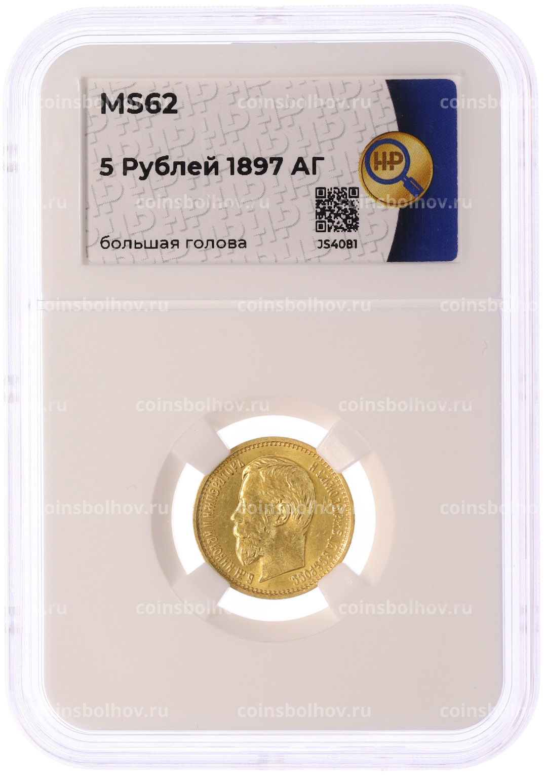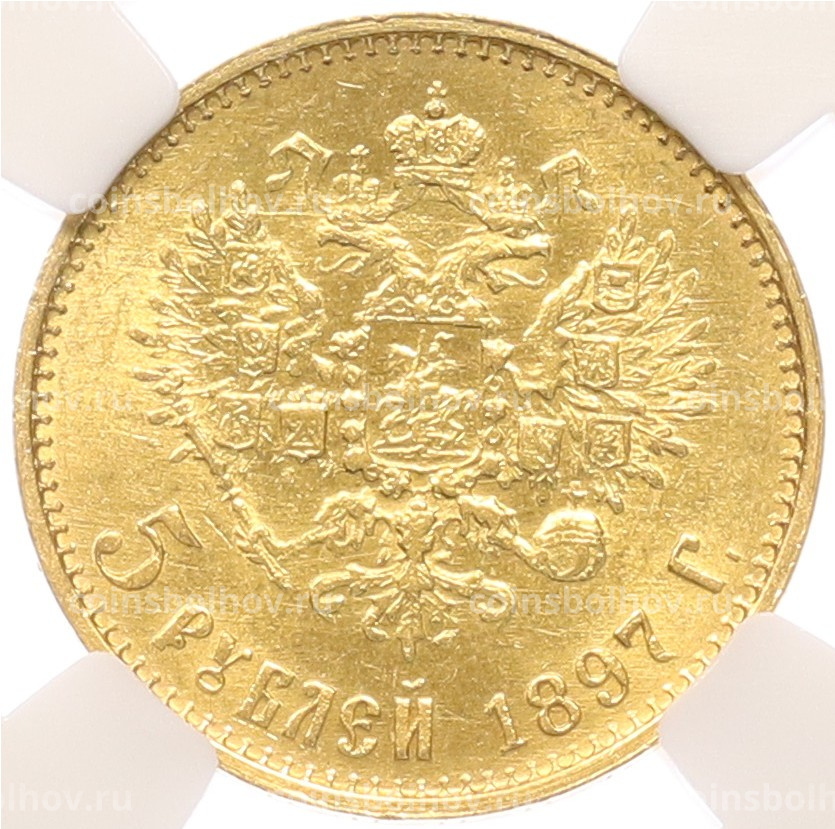 Монета 5 рублей 1897 года (АГ) Большая голова — в слабе ННР (MS62)