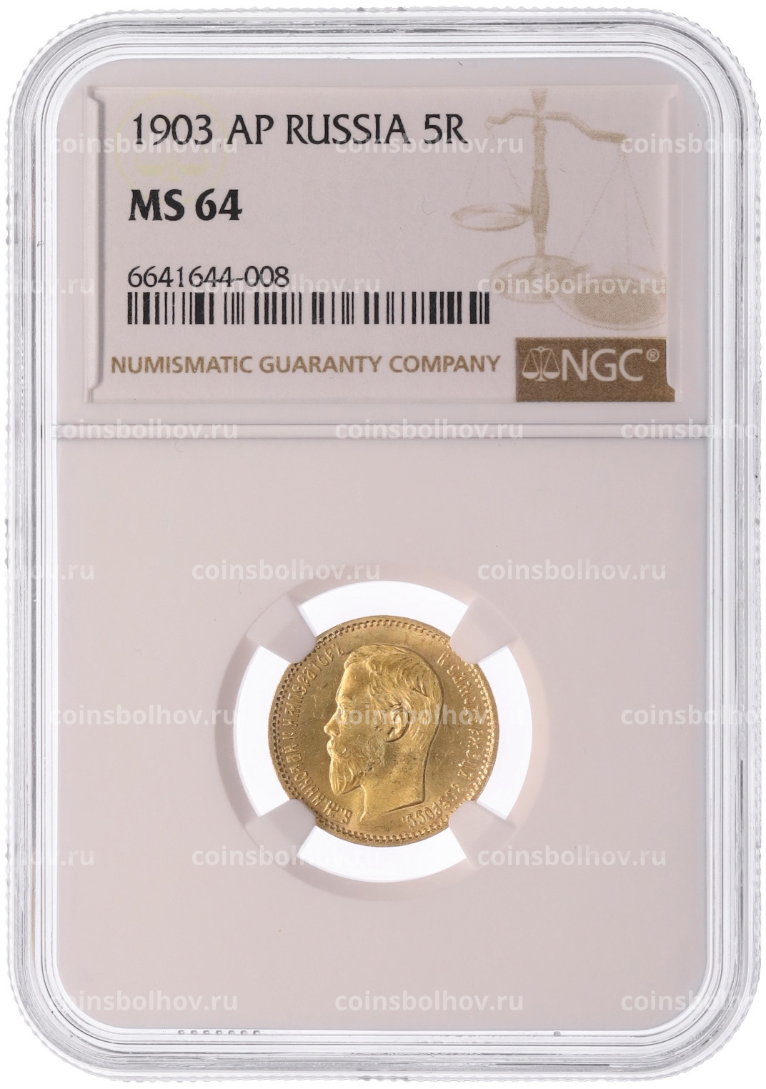 Монета 5 рублей 1903 года (АР) в слабе NGC (MS64)