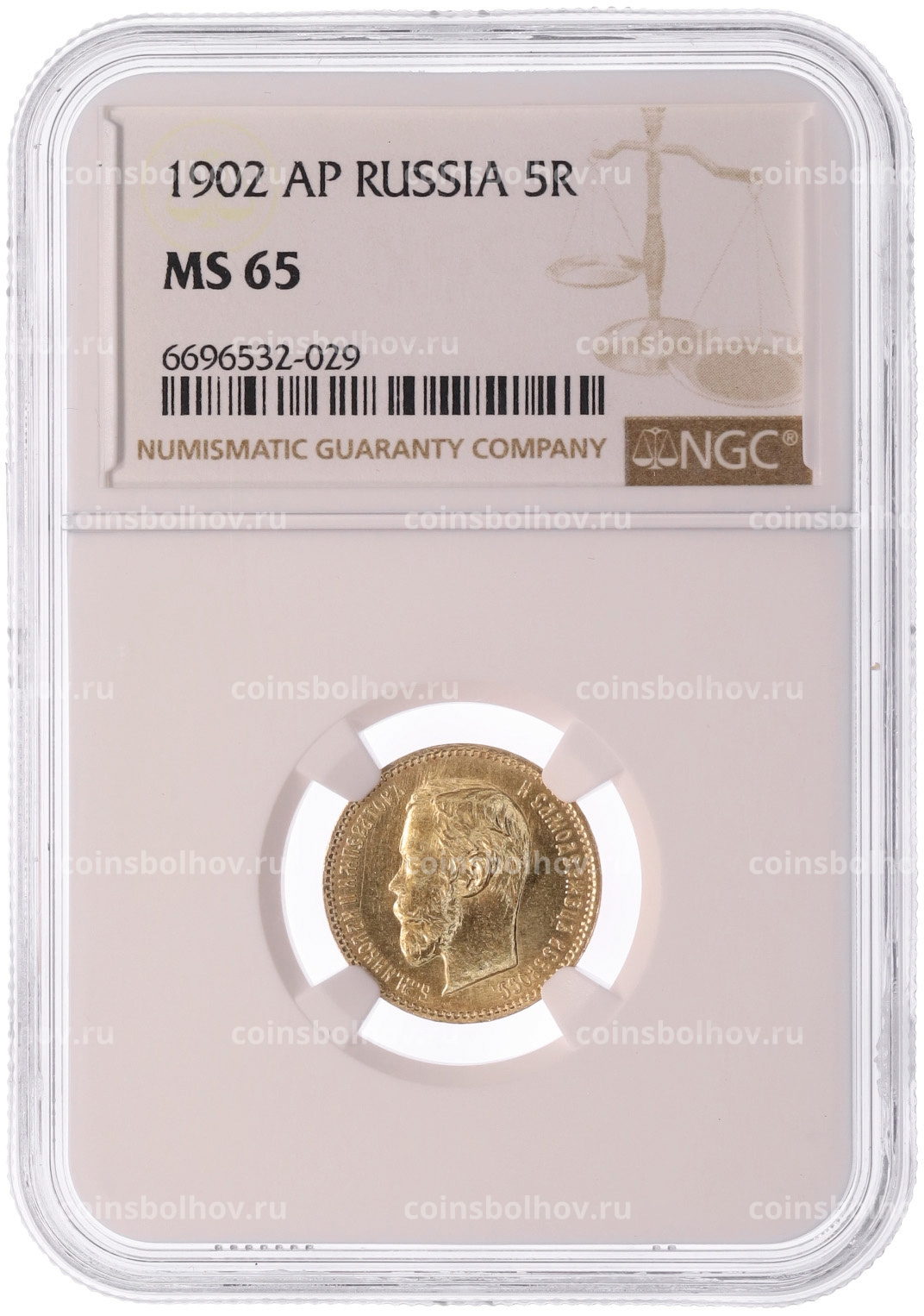 Монета 5 рублей 1902 года (АР) в слабе NGC (MS65)