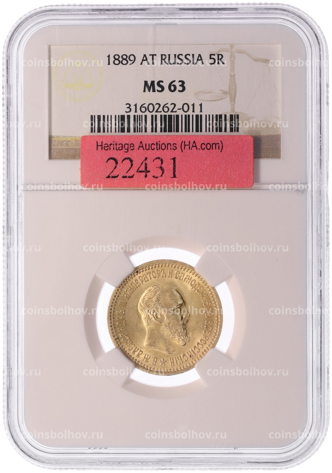 Монета 5 рублей 1889 года (АГ) в слабе NGC (MS63)