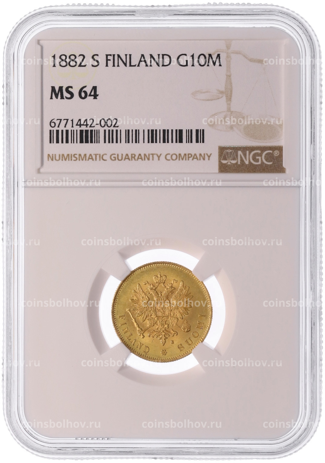 Монета 10 марок 1913 года Русская Финляндия — в слабе NGC (MS67)