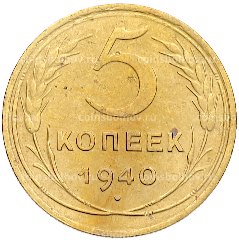 Монета 5 копеек 1940 года