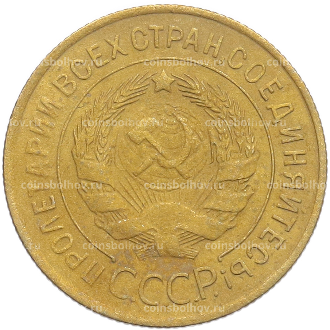 Монета 3 копейки 1932 года (аверс) Монета 3 копейки 1932 года (реверс)