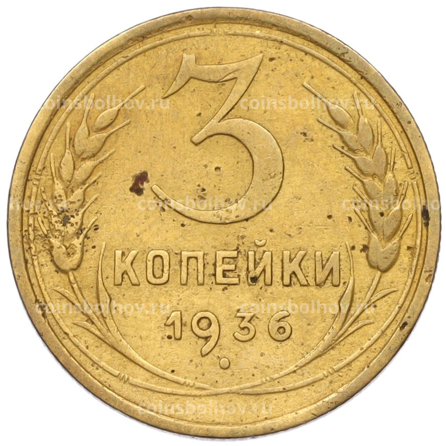 Монета 3 копейки 1936 года