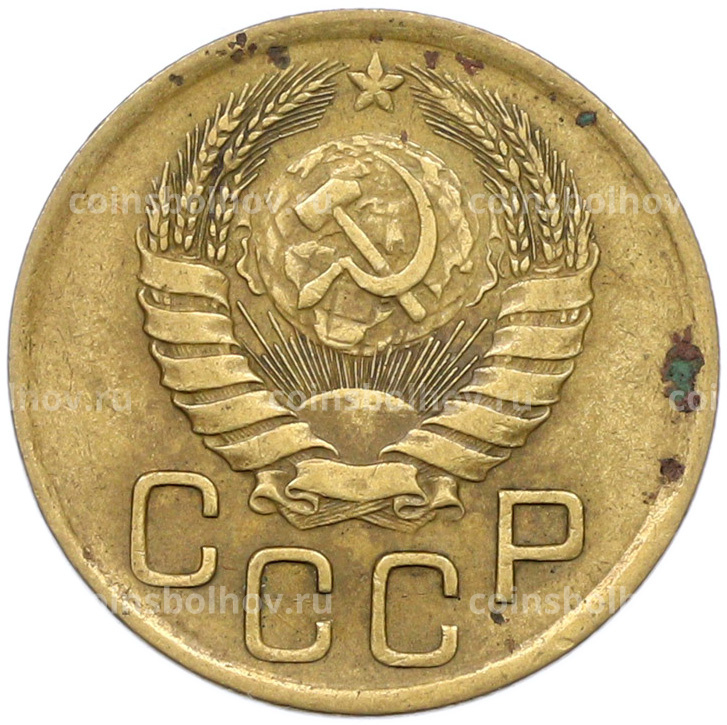 Монета 3 копейки 1936 года (аверс) Монета 3 копейки 1936 года (реверс)