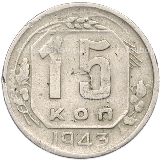 Монета 15 копеек 1943 года