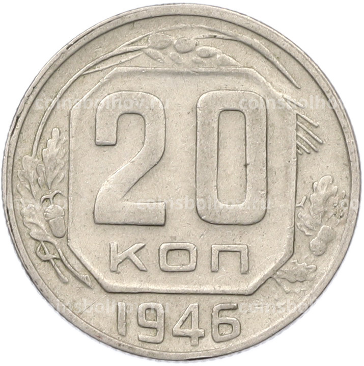 Монета 20 копеек 1946 года