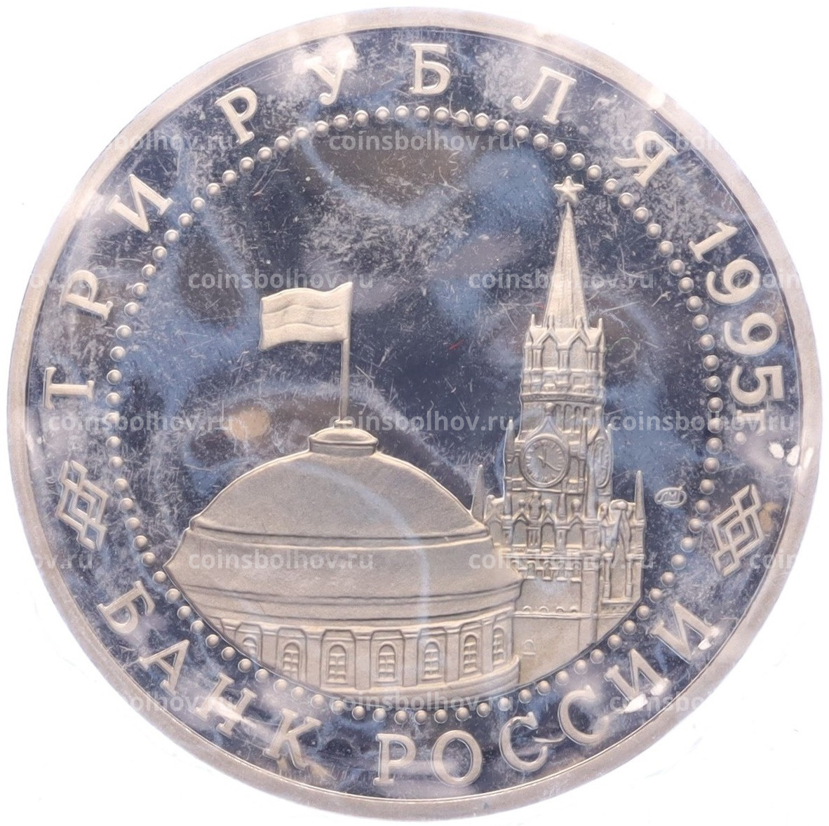 Монета 3 рубля 1995 года ЛМД «Освобождение Европы от фашизма — Варшава»