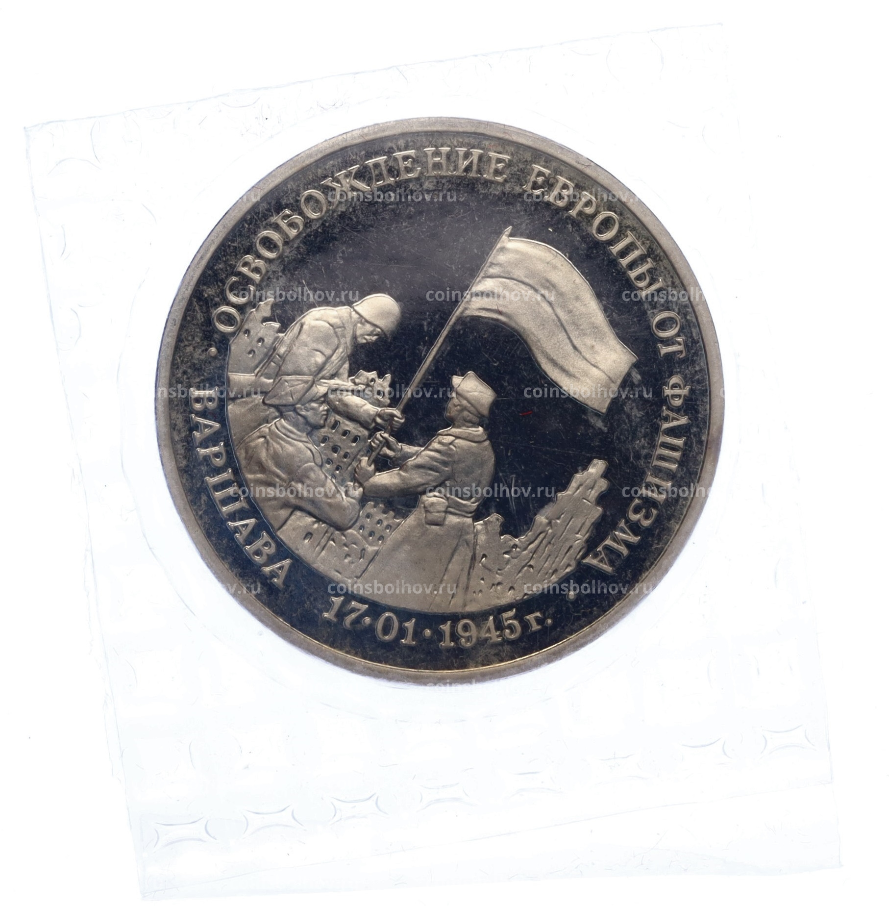 Монета 3 рубля 1995 года ЛМД «Освобождение Европы от фашизма — Варшава»