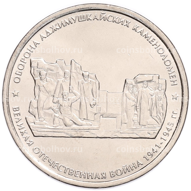 Монета 5 рублей 2015 года ММД «Великая Отечественная война — Оборона Аджимушкайских каменоломен»