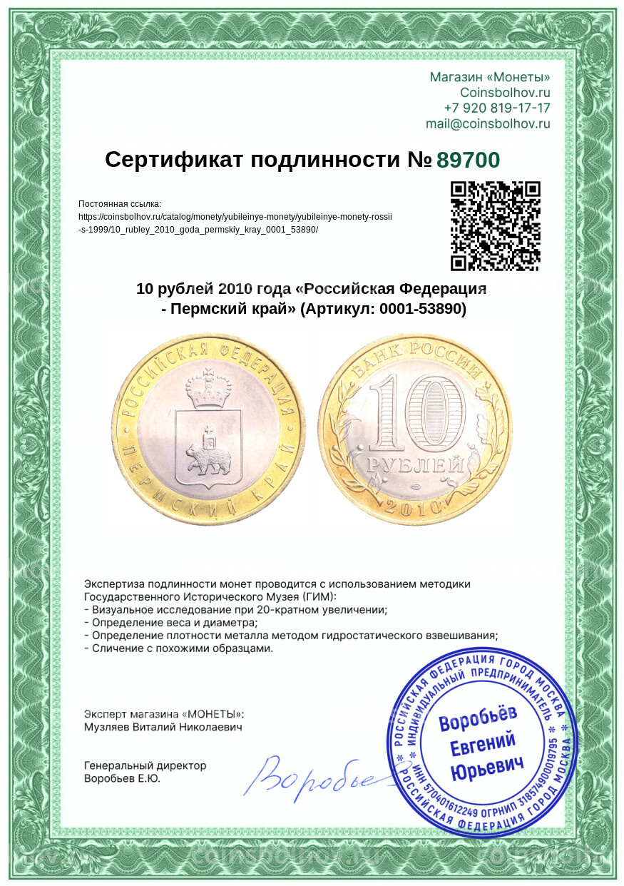 Монета 10 рублей 2010 года «Российская Федерация - Пермский край»