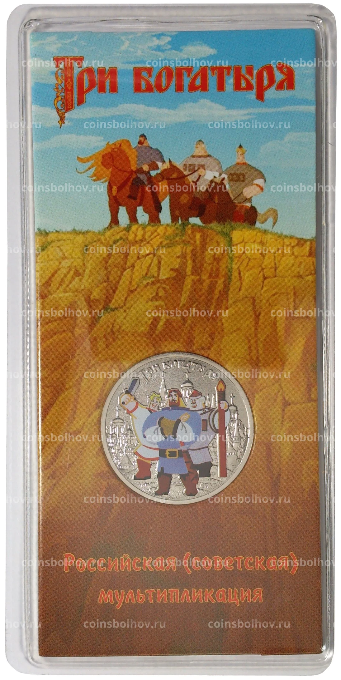Монета 25 рублей 2017 года Российская (советская) мультипликация — Три богатыря (цветная)