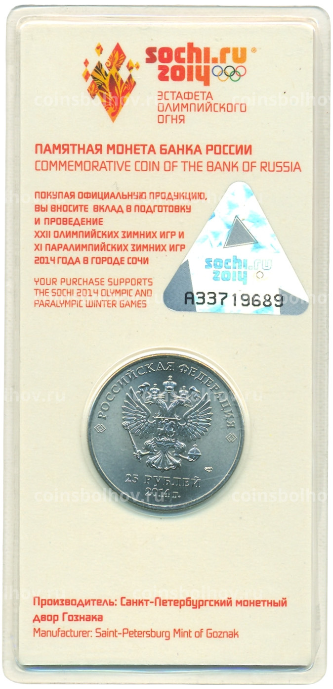 Монета 25 рублей 2014 года СПМД «XXII зимние Олимпийские Игры 2014 в Сочи — Факел» (Цветная)