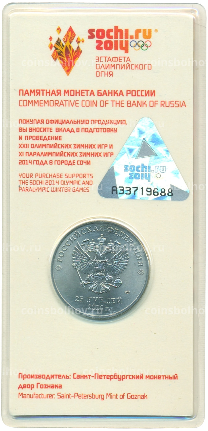 Монета 25 рублей 2014 года СПМД «XXII зимние Олимпийские Игры 2014 в Сочи — Факел» (Цветная)