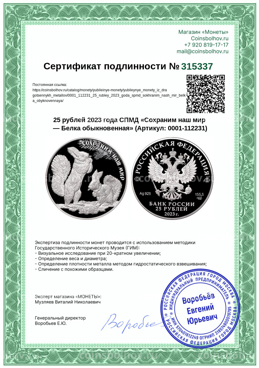 Монета 25 рублей 2023 года СПМД «Сохраним наш мир — Белка обыкновенная»