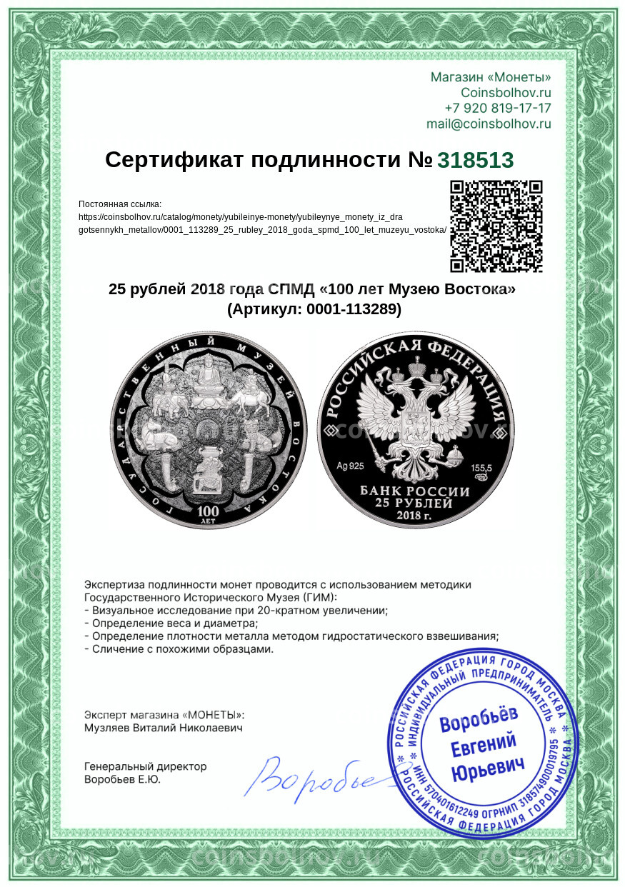 Монета 25 рублей 2018 года СПМД «100 лет Музею Востока»