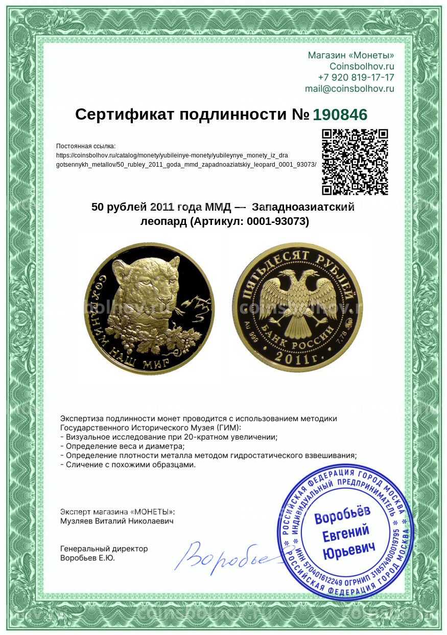 Монета 50 рублей 2011 года ММД — Западноазиатский леопард