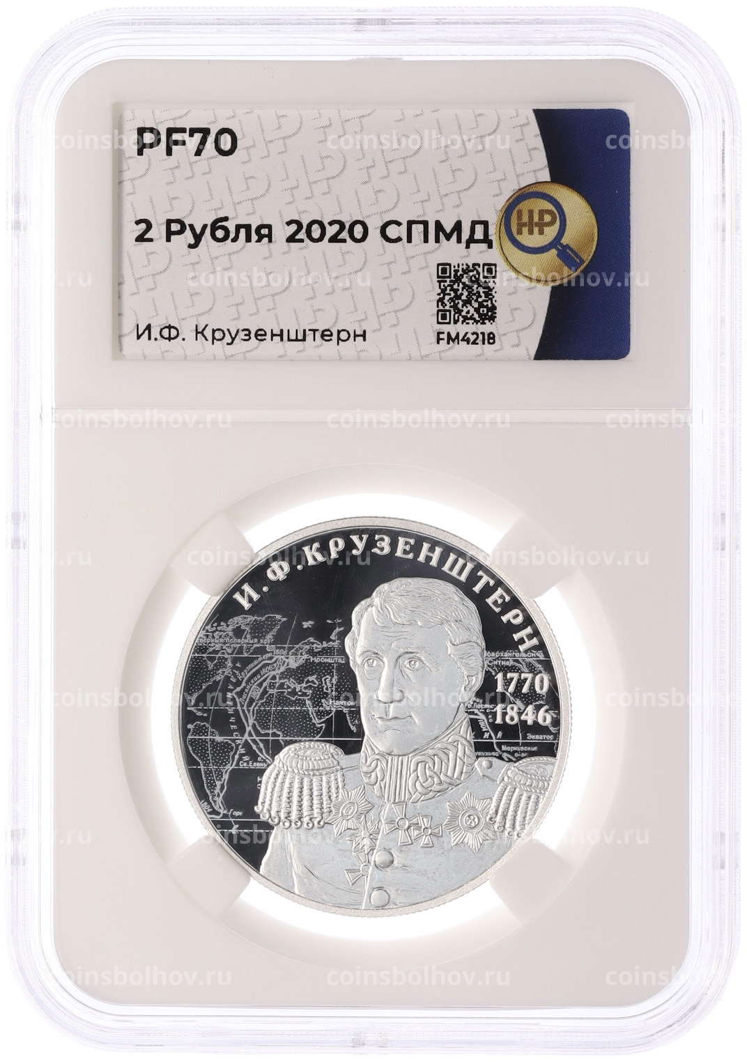 Монета 2 рубля 2020 года СПМД «250 лет со дня рождения Ивана Федоровича Крузенштерна» в слабе ННР (Топ-грейд PF70)