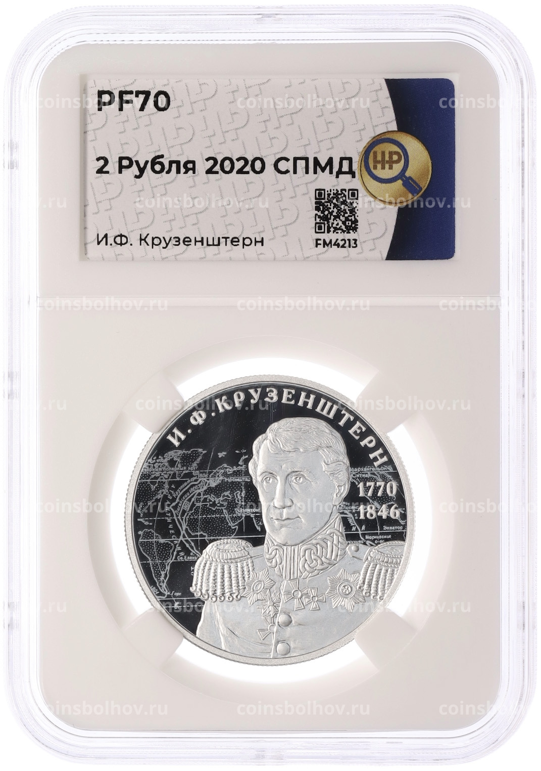 Монета 2 рубля 2020 года СПМД «250 лет со дня рождения Ивана Федоровича Крузенштерна» в слабе ННР (Топ-грейд PF70)