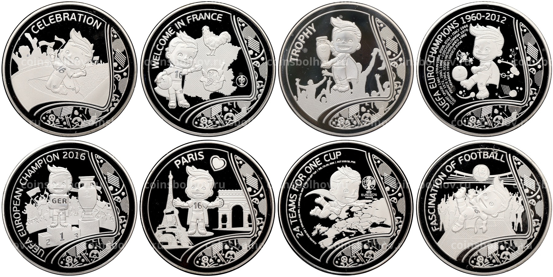 Набор из 8 медалей 2016 года Франция «Чемпионат Европы по футболу UEFA EURO 2016»