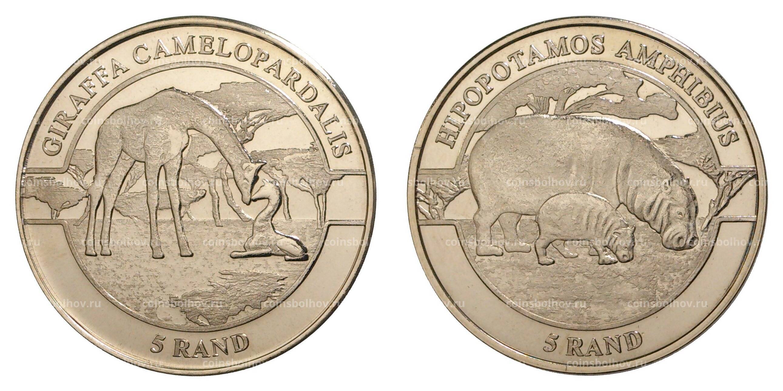 Набор монет 5 рэнд 2018 года Венда (ЮАР) «Жираф» и «Гиппопотам»