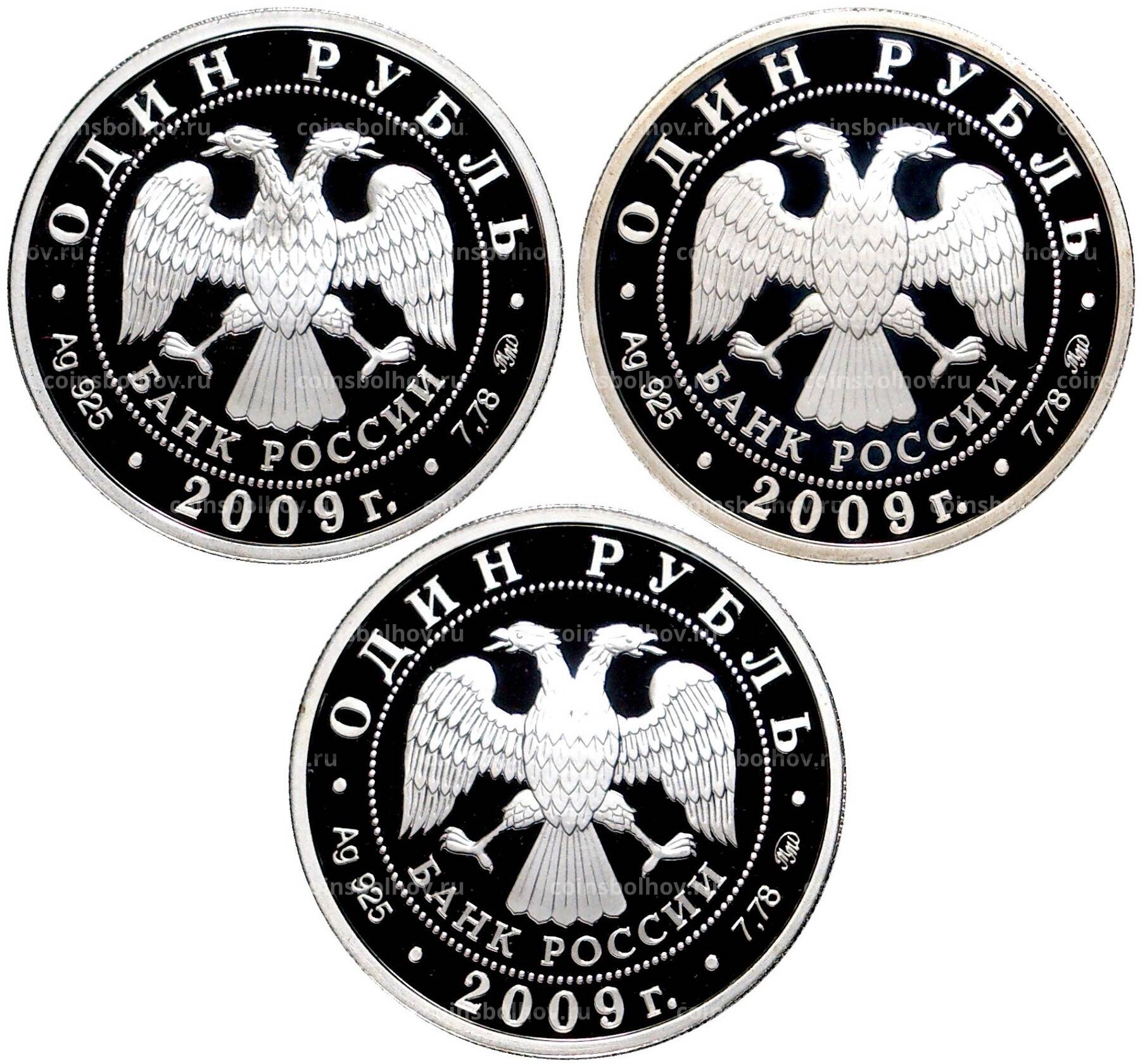 Набор из 3 монет 1 рубль 2009 года ММД — Вооруженные силы РФ — Военно-воздушные силы (ВВС)