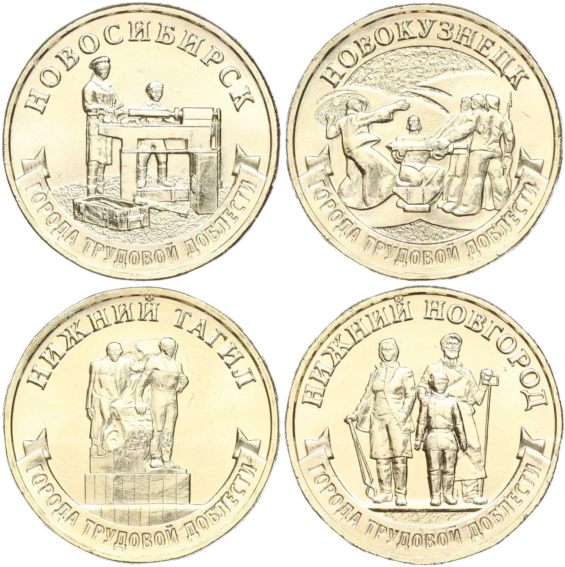 Набор из четырех монет серии «Города Трудовой Доблести» 2023 года выпуска:
