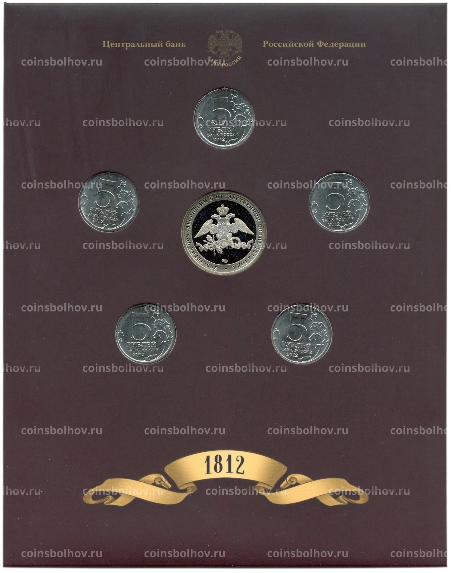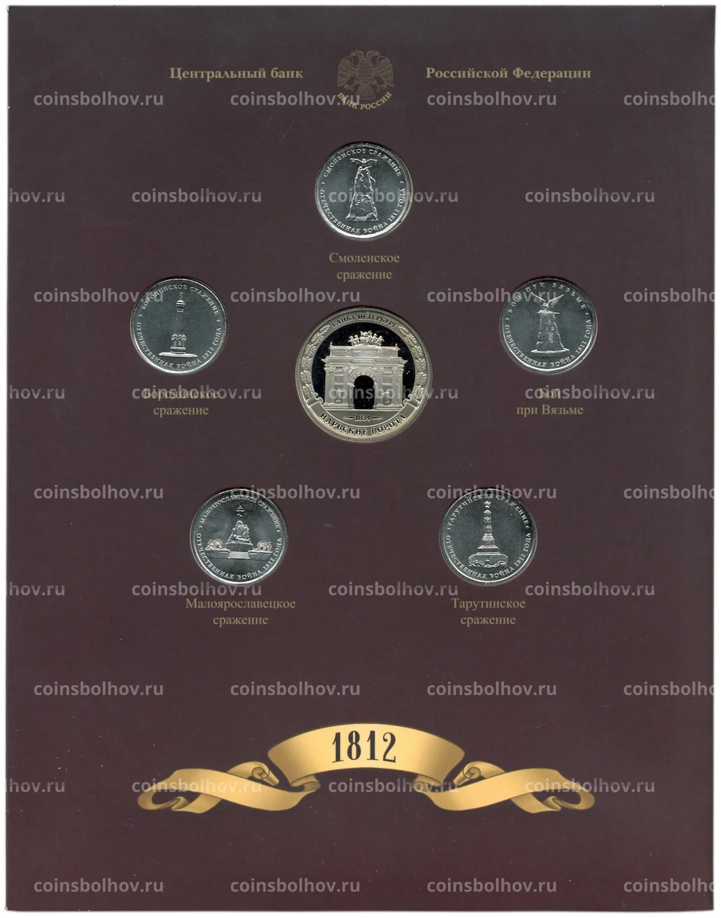Набор из 5 монет 5 рублей 2012 года «200-летие победы в Отечественной войне 1812 года — Сражения и знаменательные события» — Выпуск 3 (уценка)