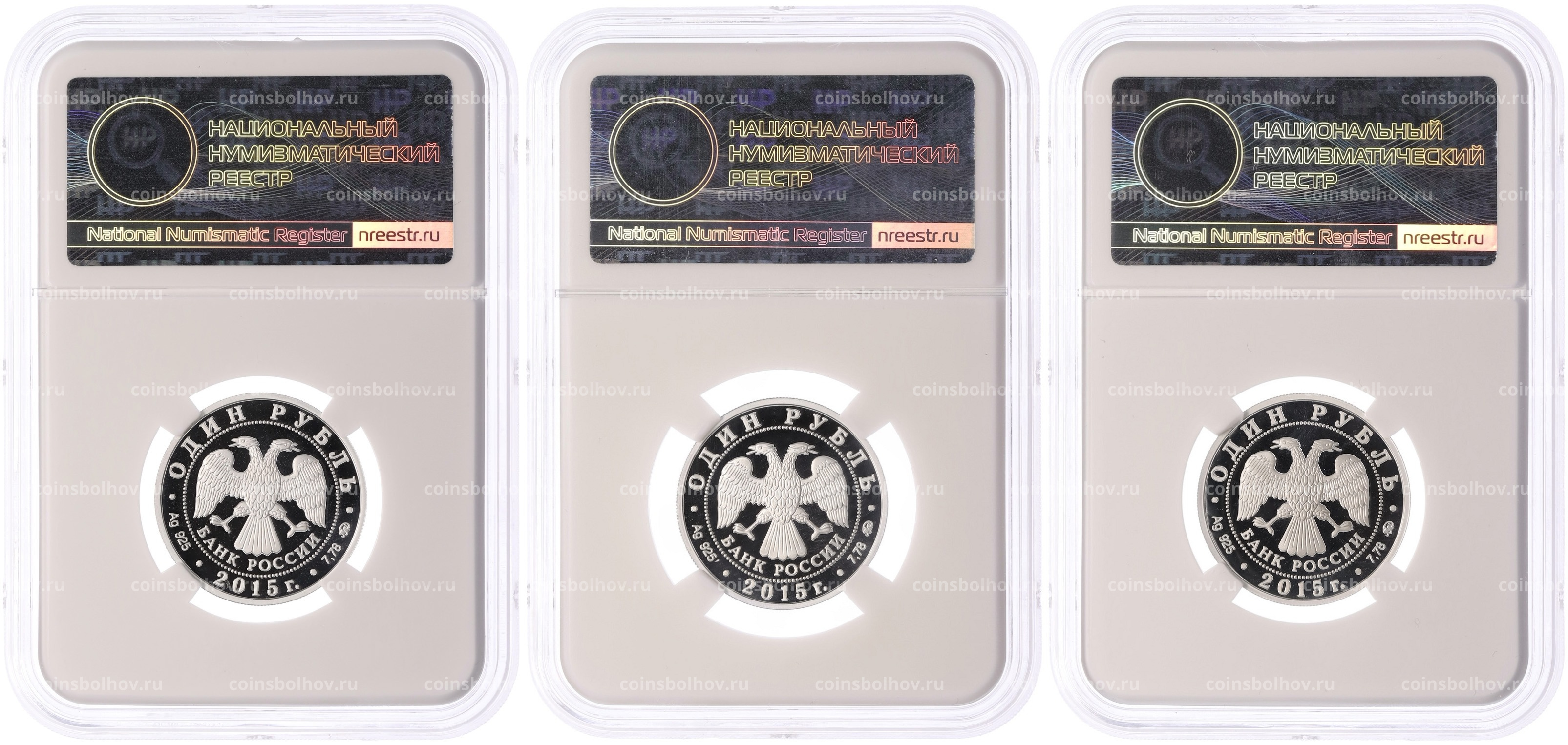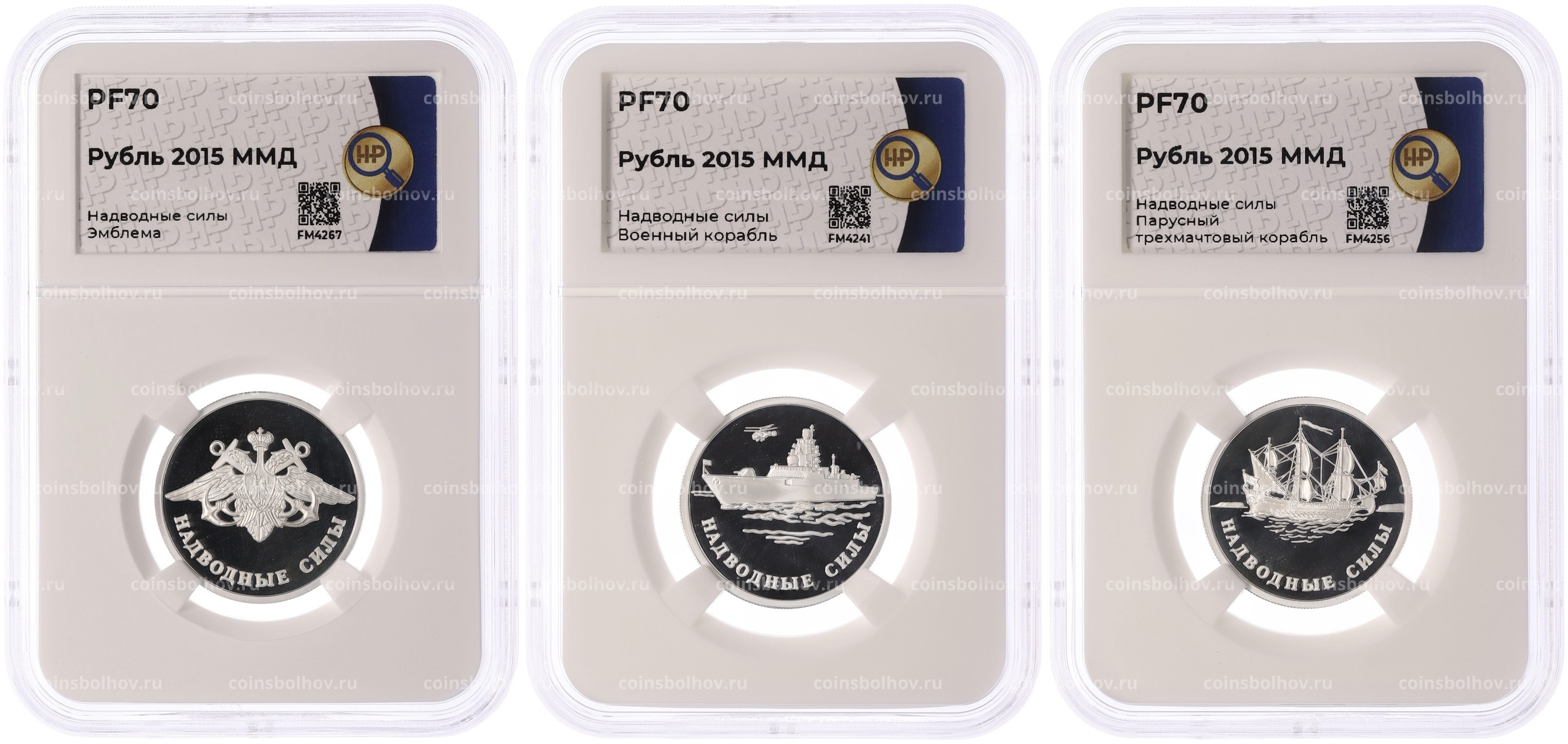 Набор из 3 монет 1 рубль 2015 года ММД «Вооруженные силы РФ — Надводные силы» в слабах ННР (Топ-грейд PF70)