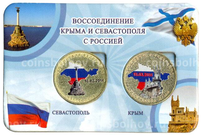 Набор из двух монет 10 рублей 2014 года Крым и Севастополь - Цветные, в планшете
