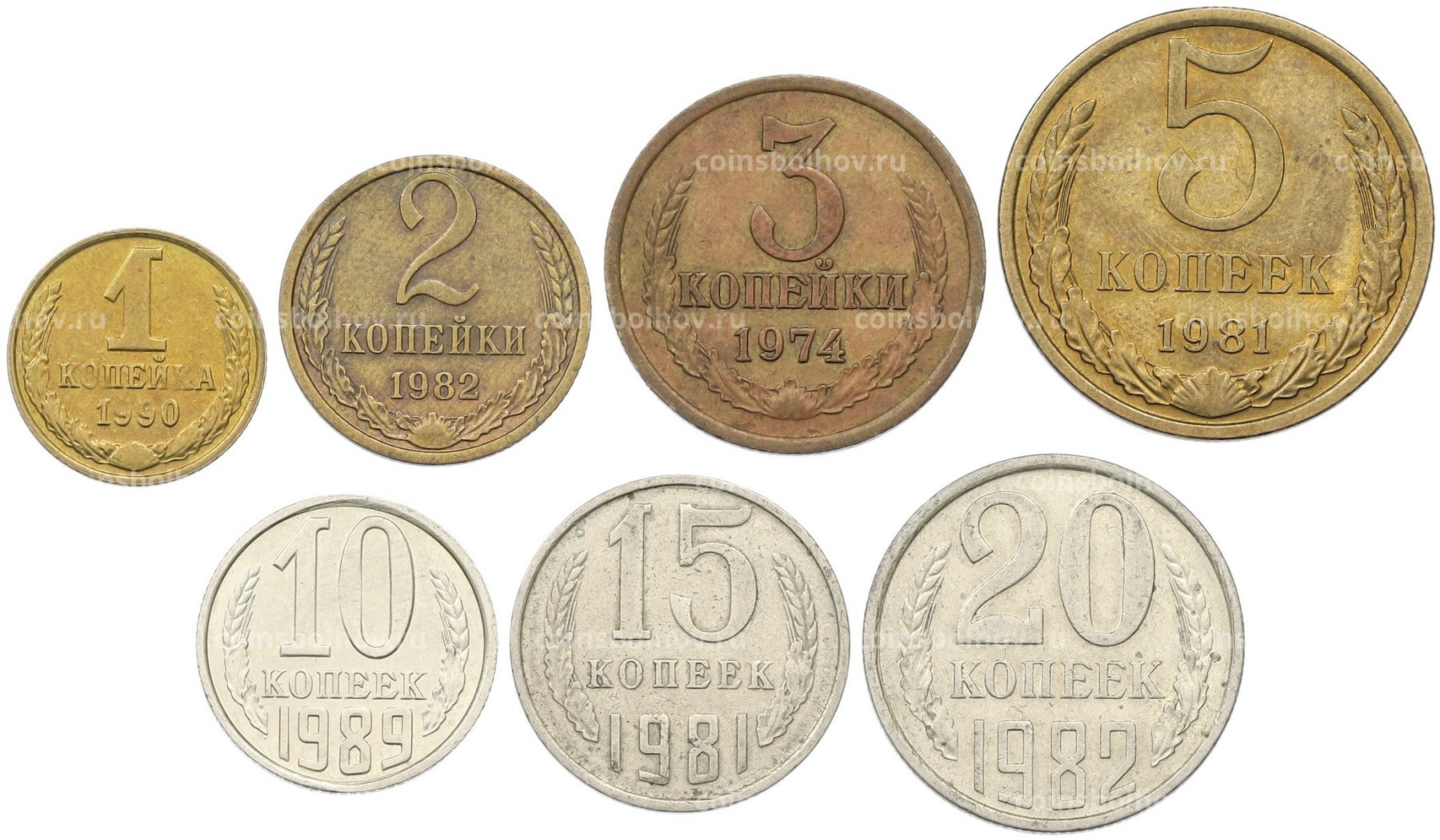 Набор монет от 1 до 20 копеек 1961-1991 годов выпуска (без редких годов и разновидностей)