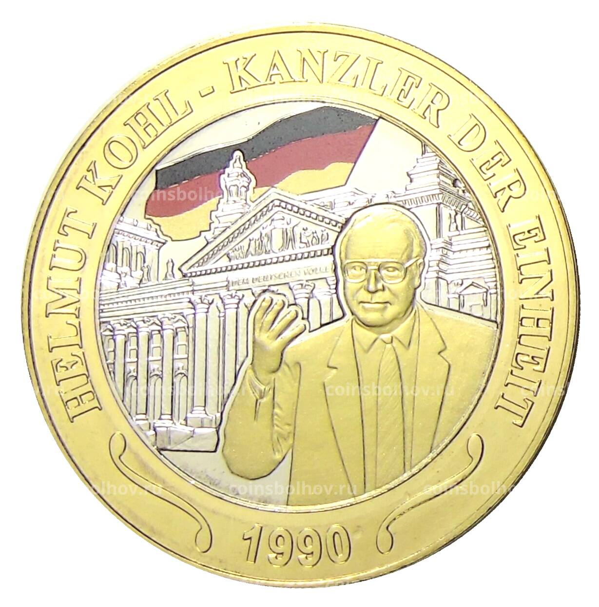Жетон 2015 года Германия «25 лет со дня объединения Германии — 1990 год, канцлер Гельмут Коль»