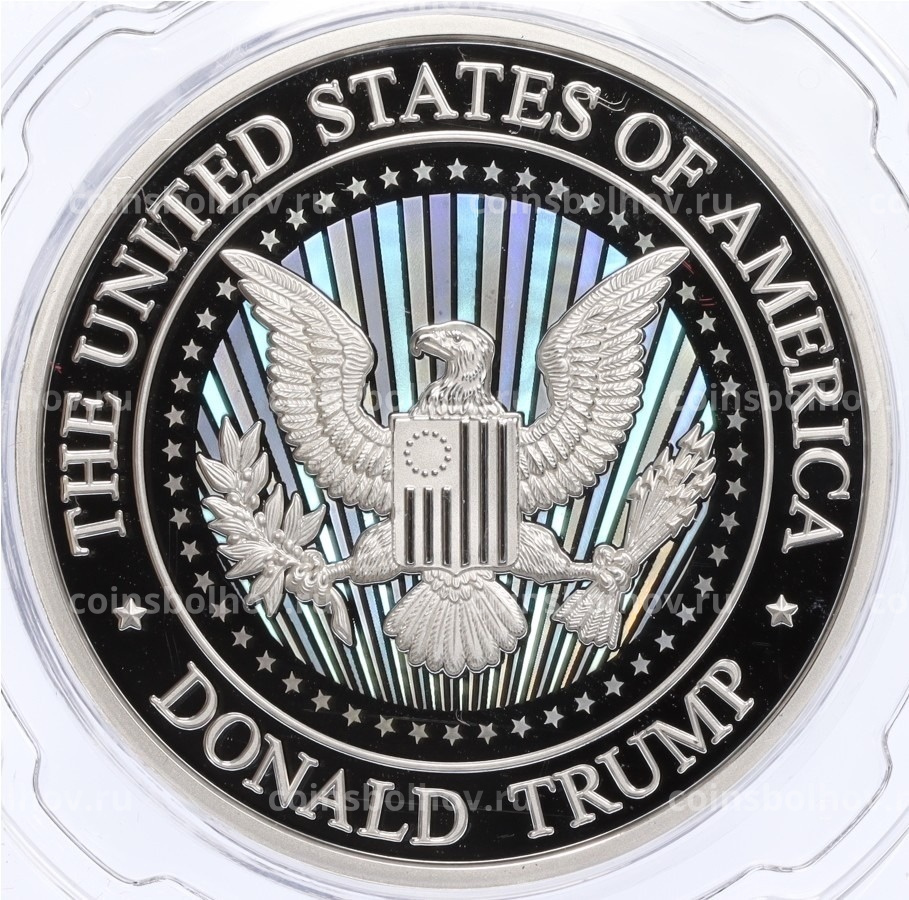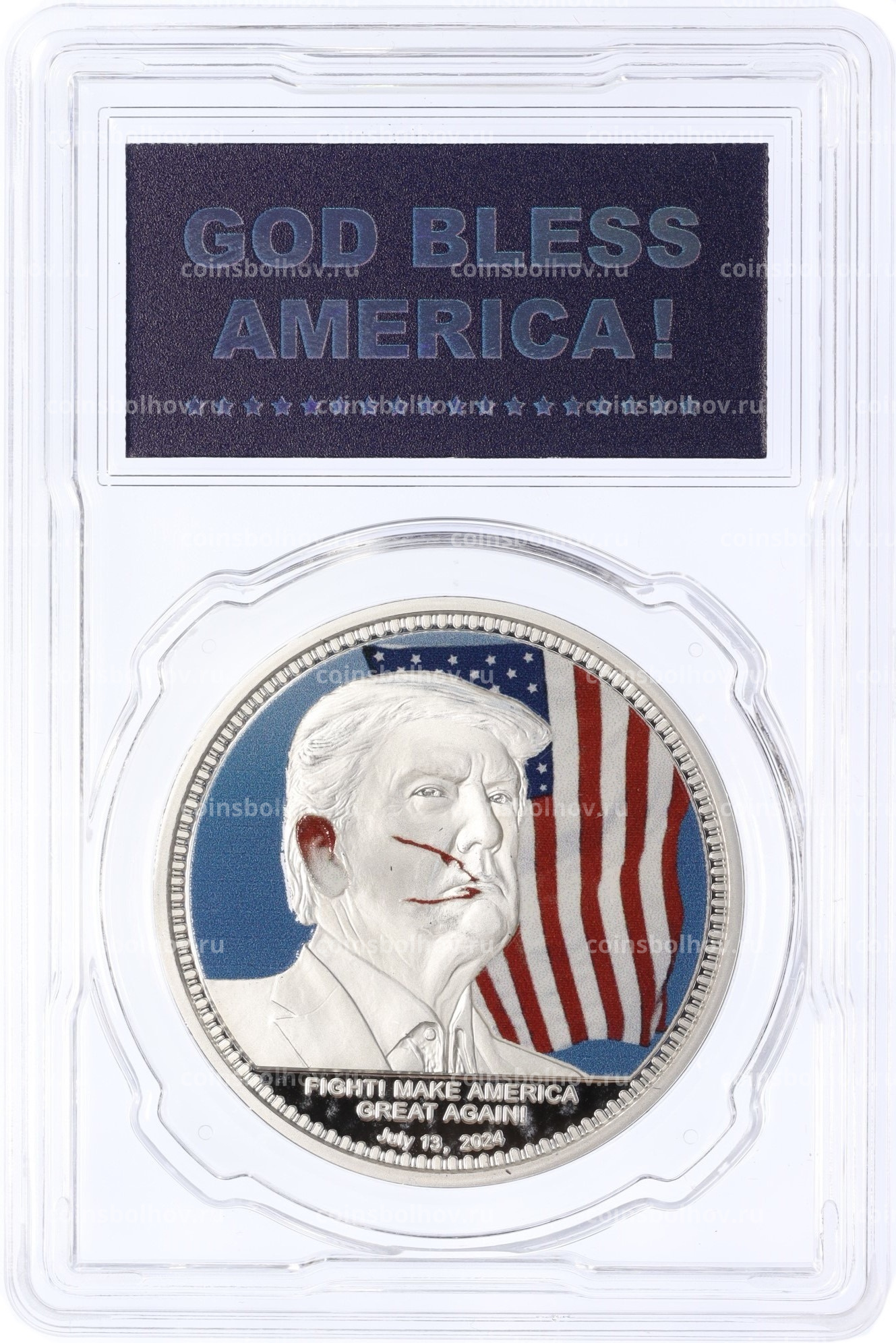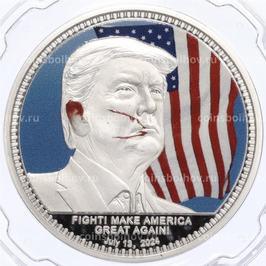 Жетон (настольная медаль) 2024 года США «Президентские выборы в США 2024 — Дональд Трамп (Покушение 13 июля 2024)»(в слабе)