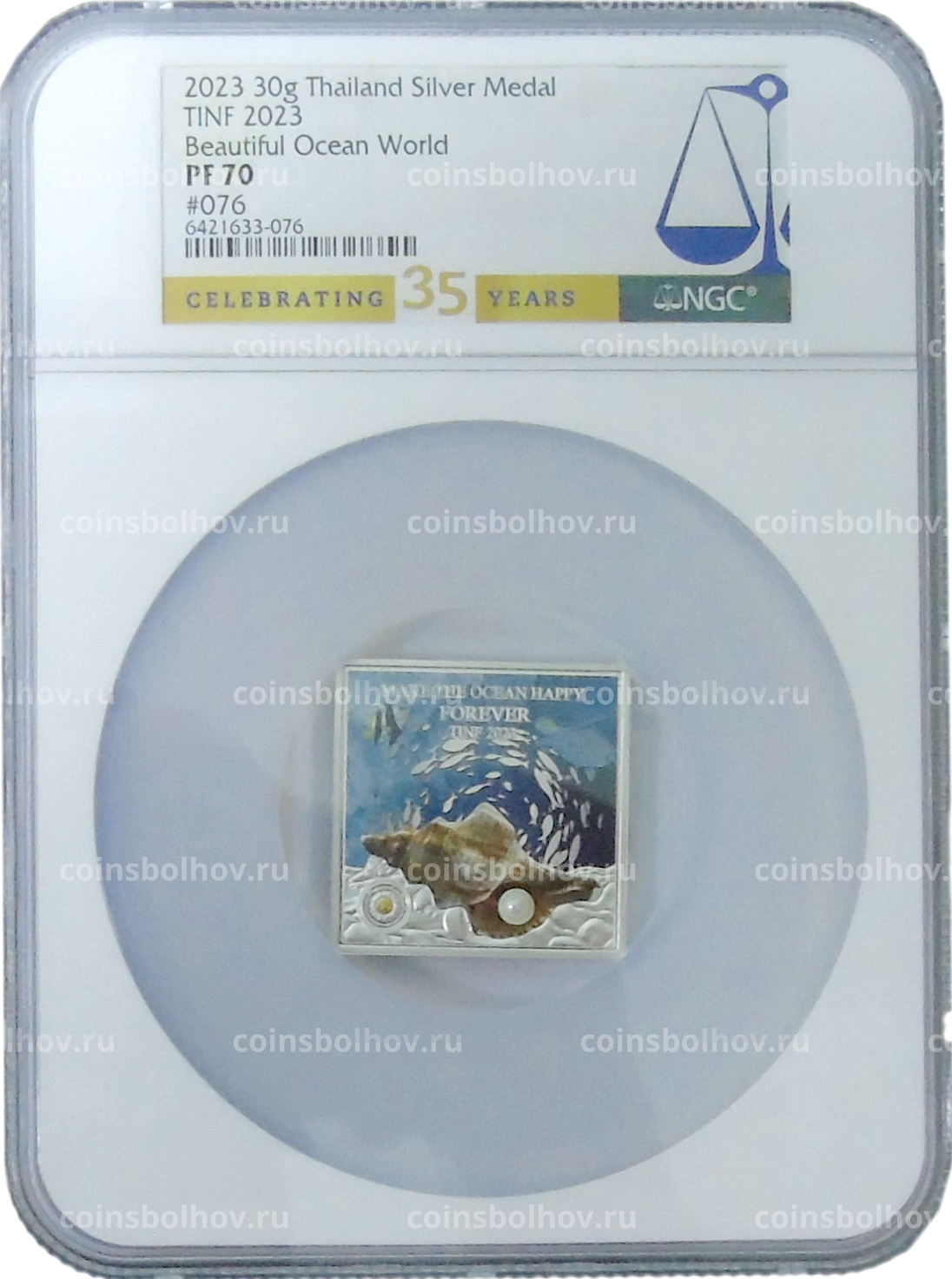Жетон (настольная медаль) «Замечательная жизнь океана — TINF 2023 (Сделай океан счастливым навсегда)» (в слабе NGC PF 70)