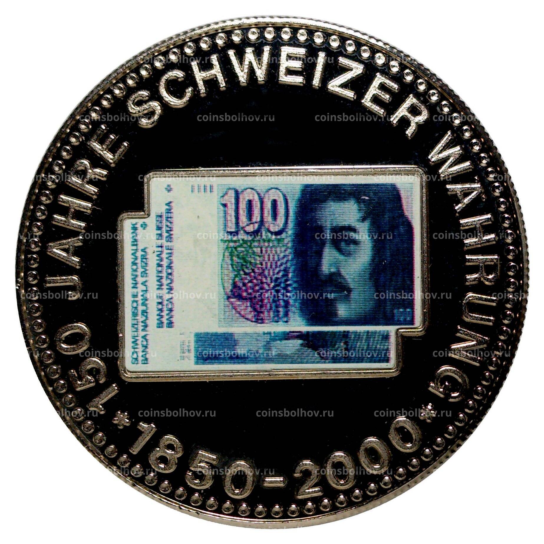 Жетон 2000 года «150 лет швейцарскому франку» (банкнота 100 франков)