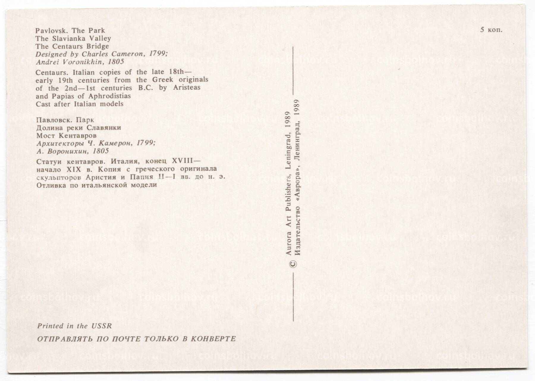 Открытка Павловск — Парк. Долина реки Славянки. Мост Кентавров.