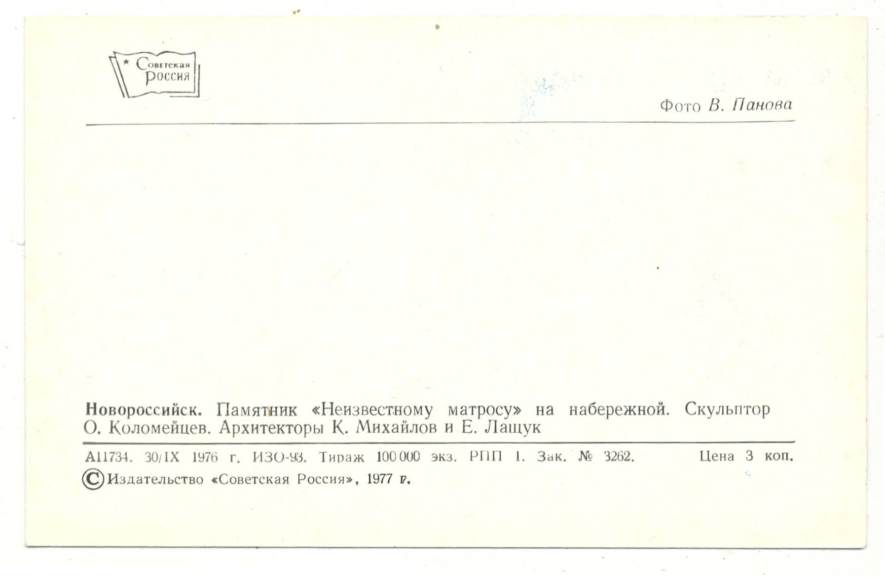Открытка Новороссийск — Памятник «Неизвестному матросу»
