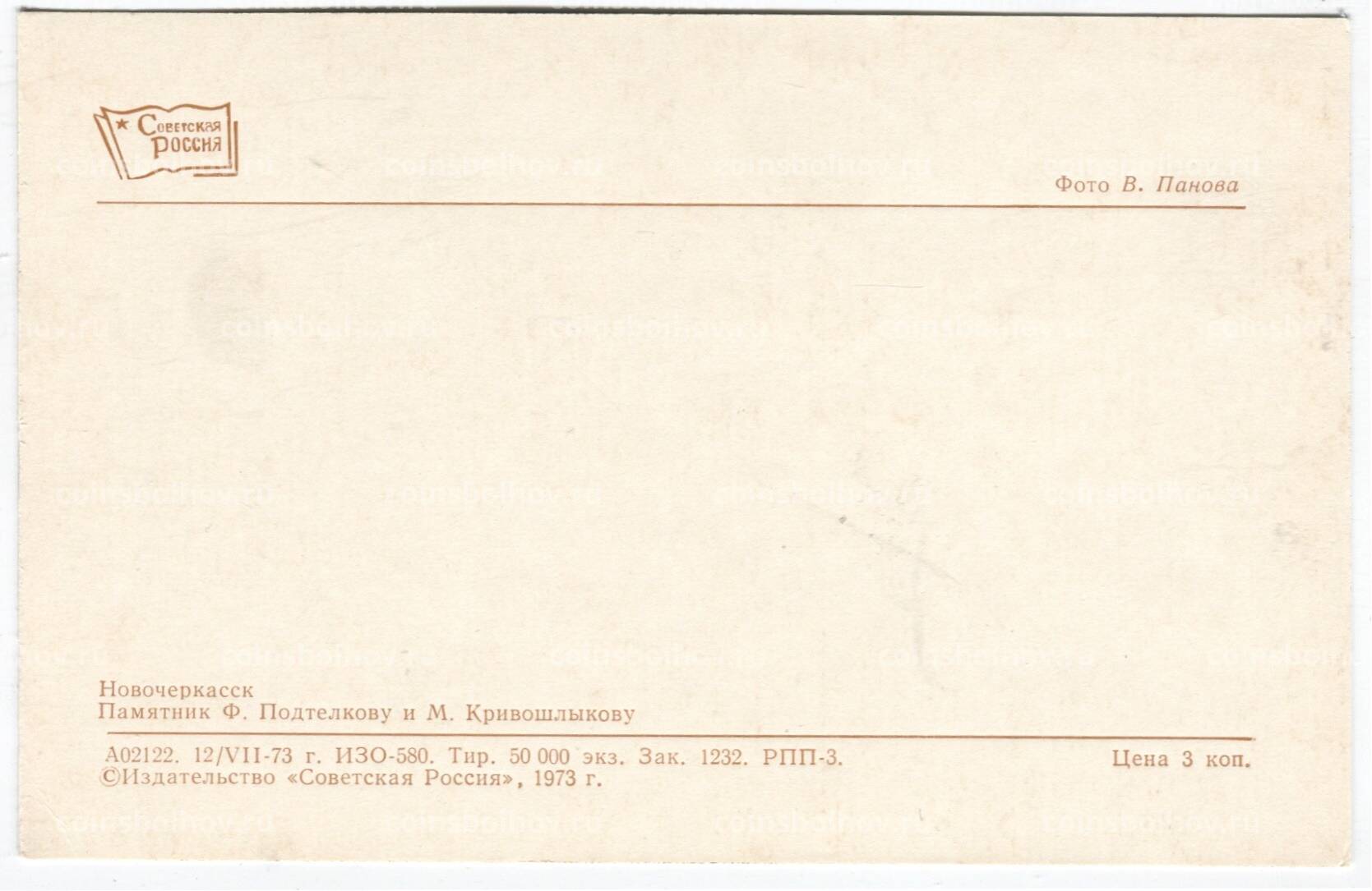 Открытка Новочеркасск — Памятник Ф.Подтелкову и М.Кривошлыкову