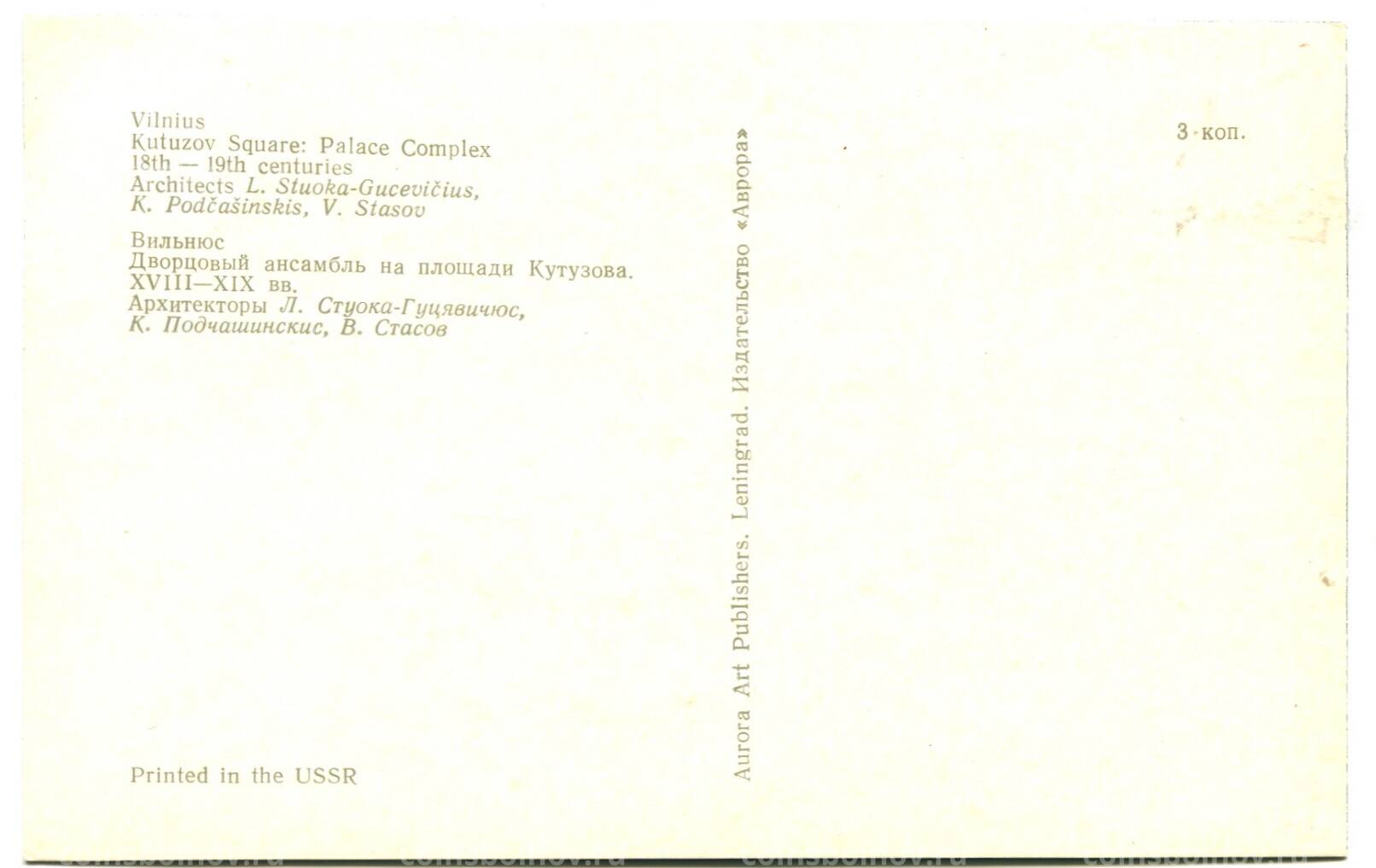 Открытка Вильнюс. Дворцовый ансамбль на площади Кутузова XVIII-XIX века