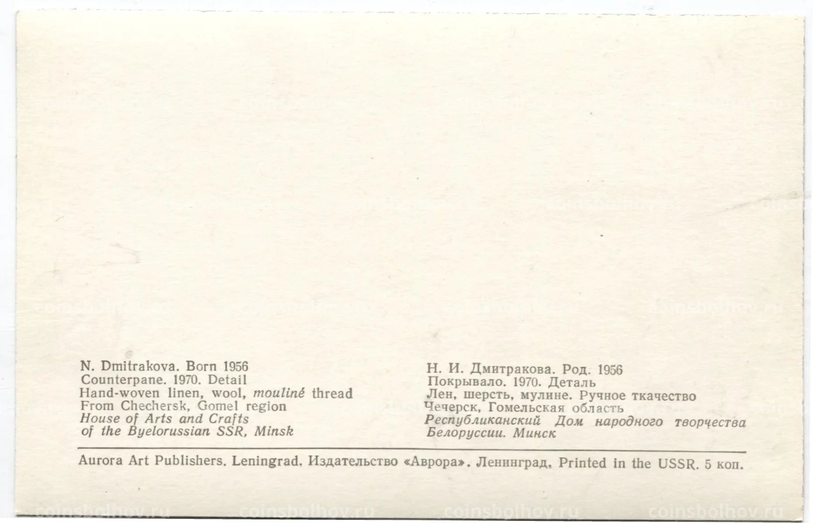 Открытка Н.И. Дмитракова — Покрывало.Лен, шерсть,мулине